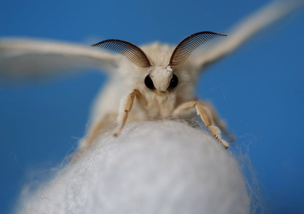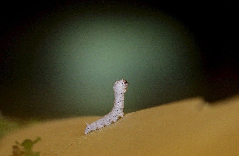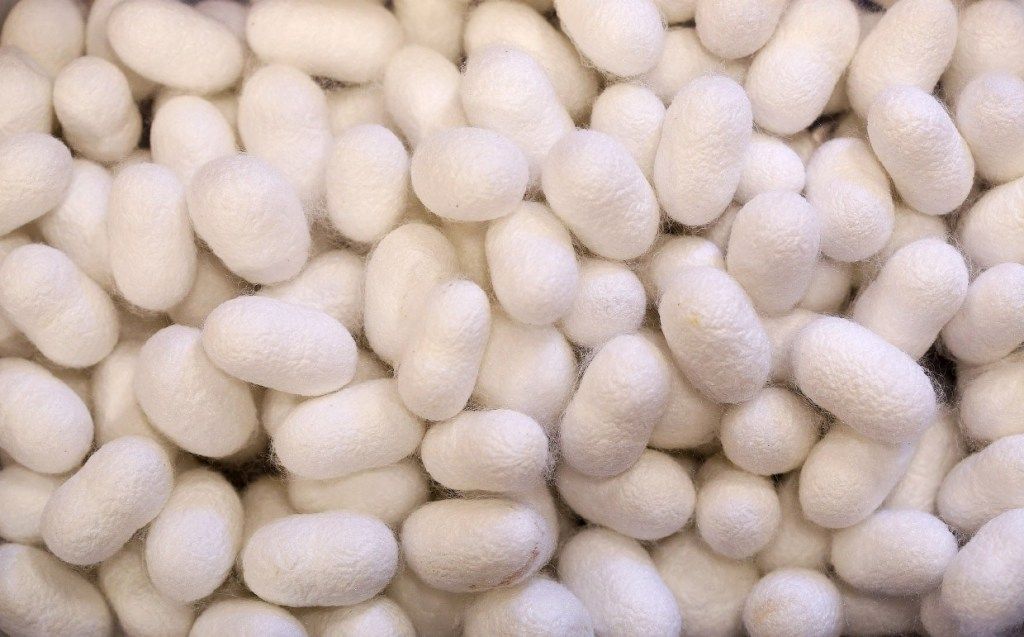 تقوم دودة القز البالغ طولها 7 سم بتكوين الشرنقة الحريرية حولها.