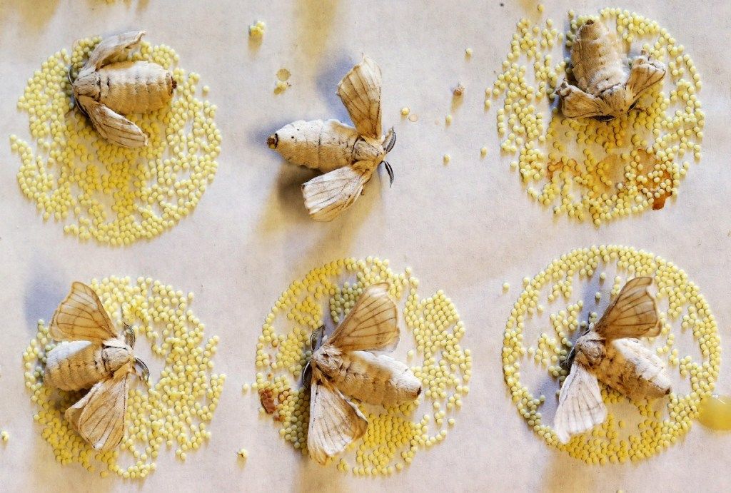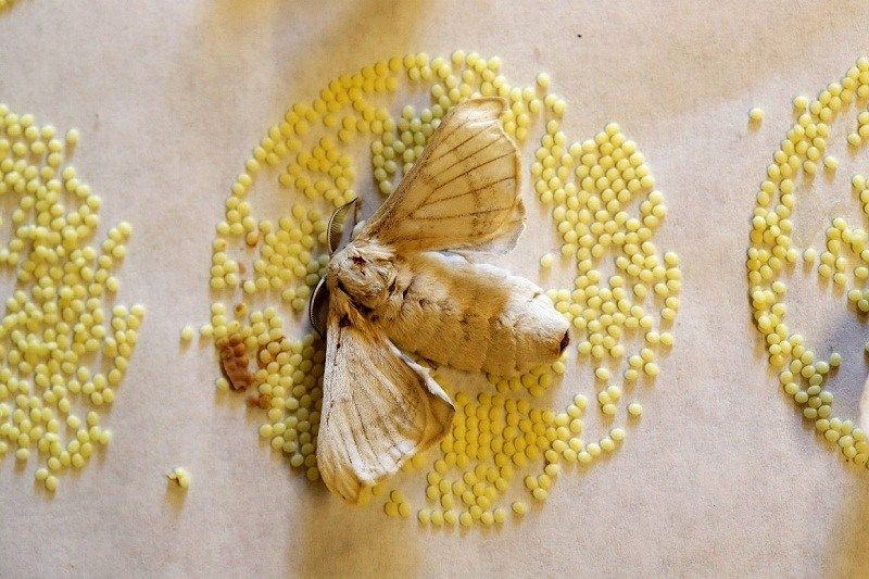 أما بالنسبة للفراشات التي خرجت من الشرنقات، فهي عمياء ولا تستطيع الطيران وتعيش لبضعة أيام فقط، خلال هذه الفترة يجب البحث عن الشريك المناسب لتتم عملية التزاوج، وبعد أيام قليلة من التزاوج، تضع الأنثى البيض على أوراق شجرة التوت.