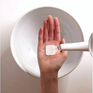ووفقا لموقع “ديلي ميل” البريطانى، يحصل المستخدمون على قطعة بيضاء صغيرة تتحول بعد ذلك إلى منظف عند إضافة الماء.