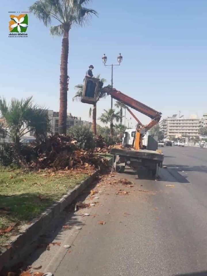 باشرت ورشات مديرية الحدائق في محافظة دمشق بحملة تجميل للأشجار على أوتستراد المزة بالإضافة إلى إعادة تأهيل للمنصف.