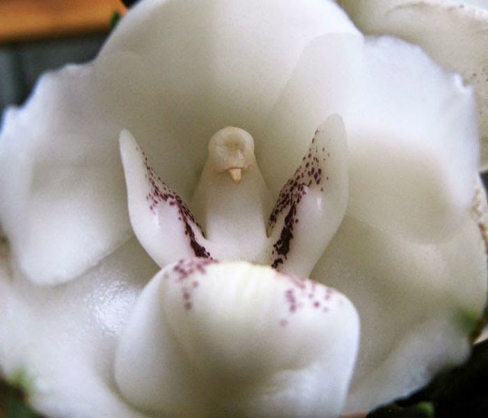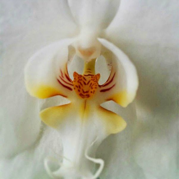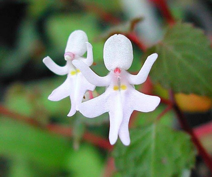 تشكل وريقات تلك الوردة البرتقالية ما يشبه الأذرع والسيقان لراقصة الباليه بينما تحتل ورقةٌ بيضاء ما يشبه التنورة المنتفخة في وسطها.