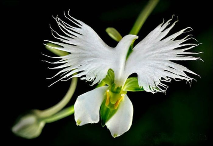 توجد في الصين واليابان وكوريا وروسيا، تشبه طائرًا أبيضًا يحلق مفرود الجناحين.