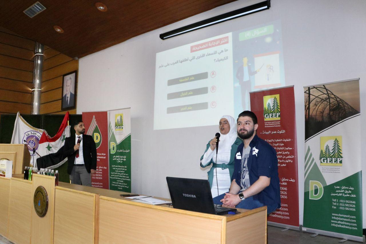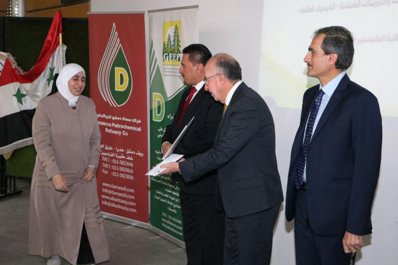 كرمت كلية العلوم بجامعة دمشق وشركة مصفاة دمشق للبتروكيمياويات الطلبة الفائزين بالمسابقة الخضراء العلمية “الثانية”، وشارك فيها نحو 80 طالب وطالبة من كليات العلوم /قسم الكيمياء/ والهندسة البترولية في الجامعات السورية كافة.