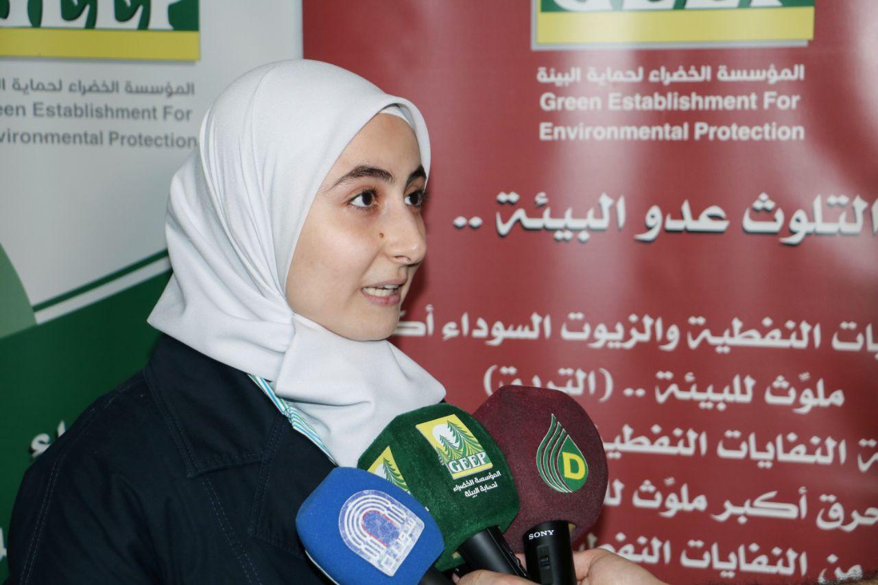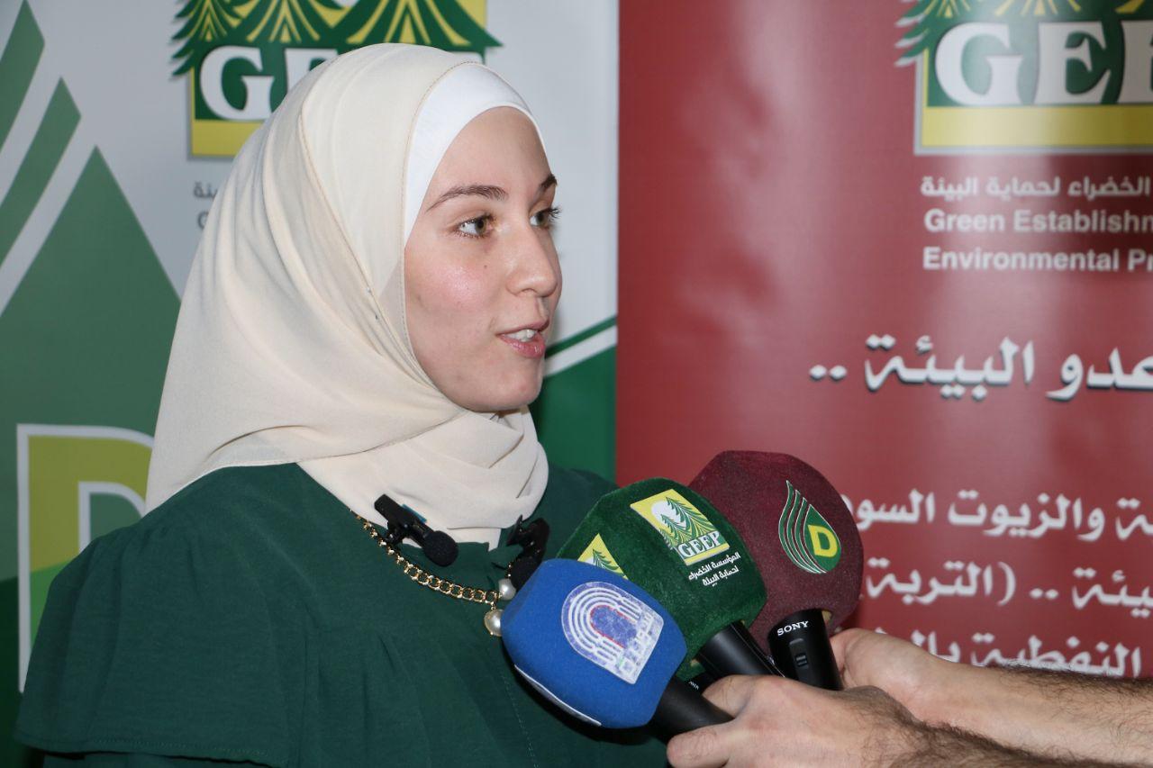 الطالبة رهف الجوراني من جامعة البعث وخريجة كلية العلوم قسم الكيمياء بينت أنها فازت بجائزة المقالات المختارة وركز بحثها على طرق معالجة مشكلة إزالة اللون والرائحة من المشتقات النفطية والكيروسين والزيوت المعدنية وبنفس الوقت المحافظة عليه بيئياً ودون استخدام مواد تضر البيئة.