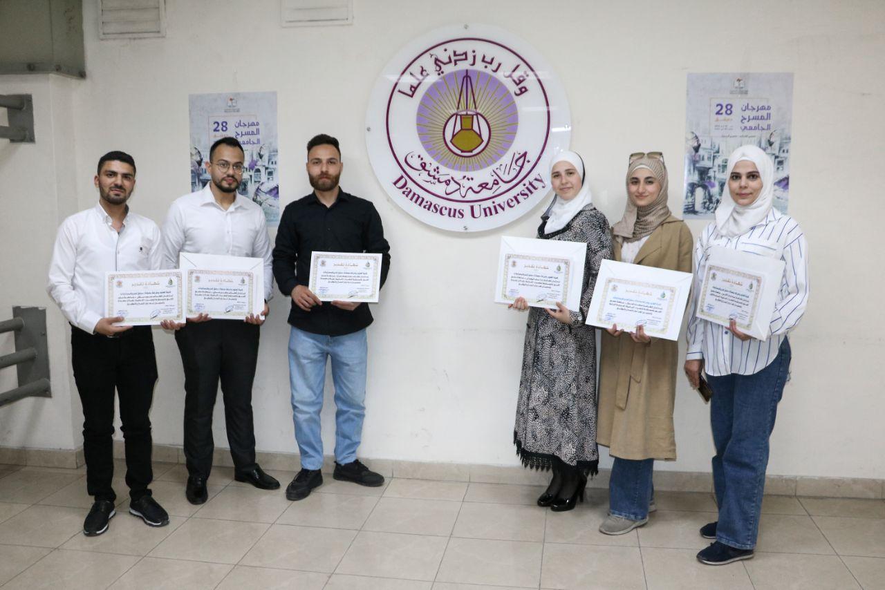 كما تم تكريم عشرة طلاب آخرين من الفائزين بجائزة المقالات المختارة وحصل كل منهم على جائزة قدرها 200 ألف ليرة سورية وهم من جامعات (دمشق وحلب والبعث).
